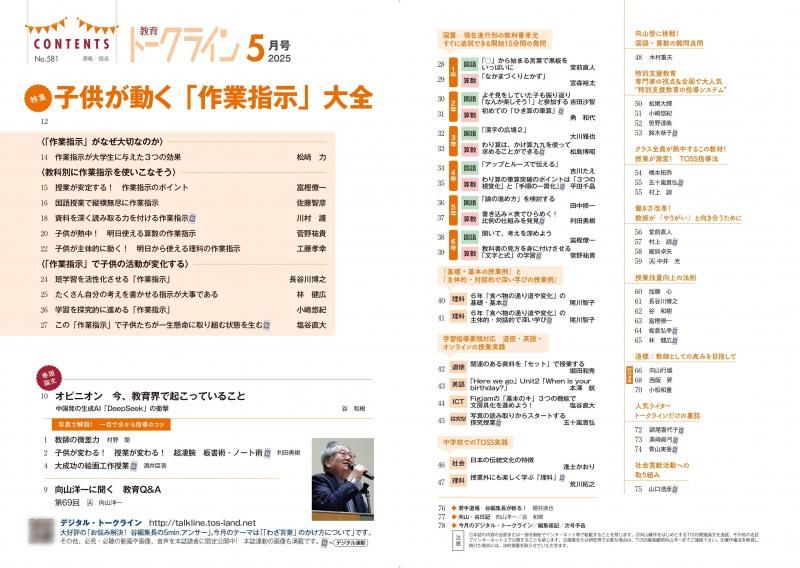 ¶µ»Õ¤Î¥Ù¡¼¥·¥Ã¥¯¥¹¥¥ë¤È¤·¤ÆÃ«ÊÔ½¸Ä¹¤¬ÂçÀڤˤ·¤Æ¤¤¤ë¡Öºî¶È»Ø¼¨¡×¤ò¡¢TOSS¼ÂÎÏÇɤÎÀèÀ¸Êý¤¬¶µ¤¨¤Æ¤¯¤ì¤ëÆÃ½¸¤Ç¤¹¡£¾Ü¤·¤¯¤Ï¡¢¥È¡¼¥¯¥é¥¤¥ó5·î¹æ¤ò¤ªÆÉ¤ß¤¯¤À¤µ¤¤¡ª
