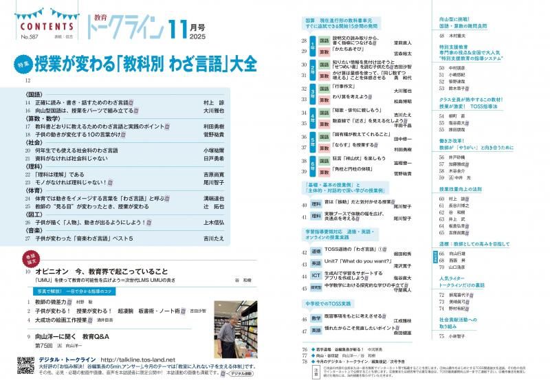 º£²ó¤ÎÆÃ½¸¤Ç¤Ï¡¢TOSS¤Î³Æ¶µ²Ê¤Î¥¨¥¥¹¥Ñ¡¼¥È¤ÎÀèÀ¸Êý¤Ë¡¢¤½¤ì¤¾¤ì¤Î¶µ²Ê¤Ç»ÈÍѤǤ¤ë¡Ö¤ï¤¶¸À¸ì¡×¤ò¶ñÂÎŪ¤Ë¾Ò²ð¤·¤Æ¤¤¤¿¤À¤¤Þ¤·¤¿¡£»Ò¶¡¤¬ÊѲ½¤¹¤ë¡Ö¤ï¤¶¸À¸ì¡×¤ò¤ªÃΤê¤Ë¤Ê¤ê¤¿¤¤ÀèÀ¸Êý¤Ï¡¢¤¼¤Ò¡¢¥È¡¼¥¯¥é¥¤¥ó11·î¹æ¤ò¤ªÆÉ¤ß¤¯¤À¤µ¤¤¡£